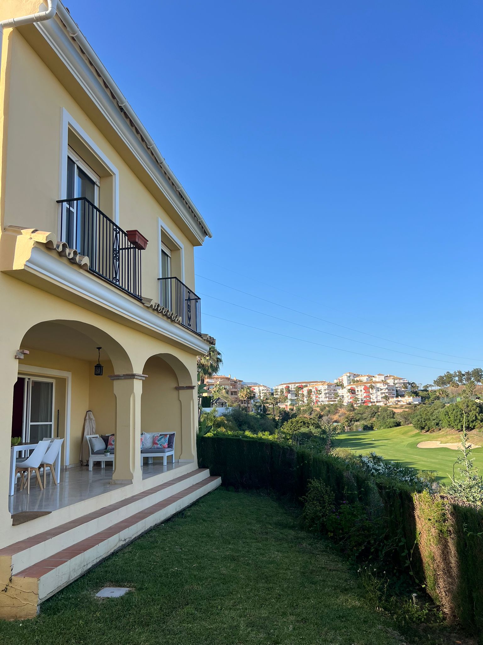 Located in the peaceful Riviera del Sol area of Mijas Costa, this charming 3-bedroom chalet offers stunning golf course views, a private garden, and access to a communal pool. Perfect for families, golfers, or couples, it features two modern bathrooms, a fully equipped kitchen, air conditioning, free Wi-Fi, and flat-screen TV. Relax in the private garden, enjoy the shared pool, or head to nearby beaches and restaurants. Private parking and laundry facilities are included. Just minutes from Miraflores Golf and the coast, this is your ideal Costa del Sol getaway.